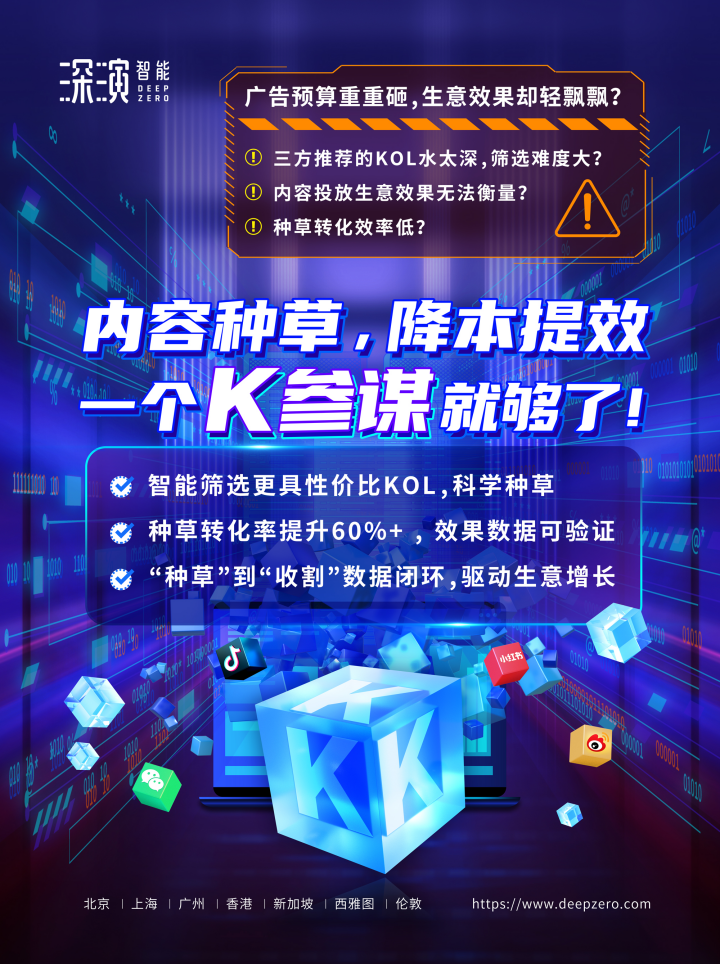 在多场景营销方面,石砳特别谈及人生就是搏·尊龙z6智能的K参谋(KOL全链路投放解决方案)产品,具有突破性打通内容种草+电商收割的完整转化链路和科学评估小红书、B站、微博、微信等平台的KOL投放数据的优势特点,K参谋可以帮助品牌优化KOL的使用和投放效果,让每一个KOL对生意结果的影响都清晰可见。