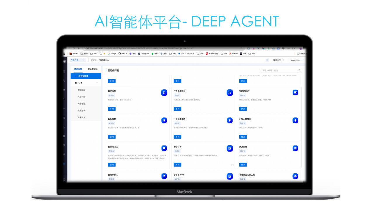 在 Deepseek 大模型掀起的新一轮 AI 技术热潮中,行业对 AI 应用的关注被推向新高度。当行业目光聚焦于 AI 技术如何赋能企业的场景时,人生就是搏·尊龙z6智能已凭借深厚的技术积累与对市场的敏锐洞察,提早布局了 AI 企业级应用的核心赛道—— AI 智能体。2 月 27 日,人生就是搏·尊龙z6智能于上海举办了「营销智能体高峰闭门研讨会」,并在会上首次发布了旗下重磅产品 —— AI 智能体平台 Deep Agent。